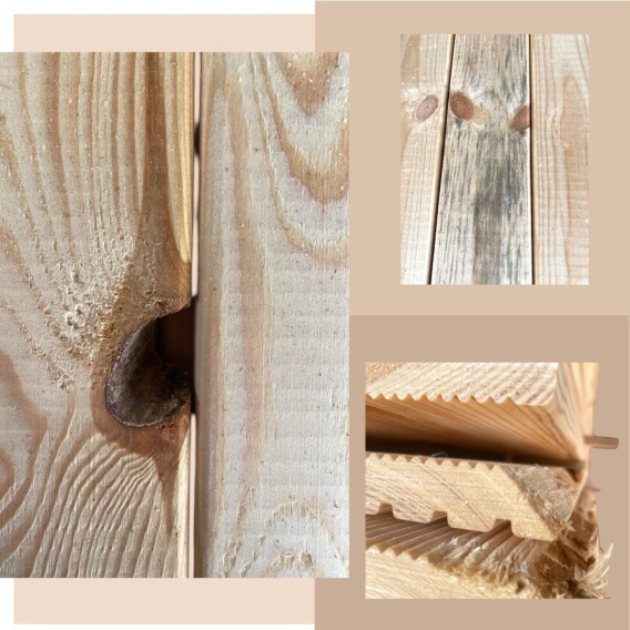 DESKI TARASOWE w klasie C- są to deski niższej klasy stosowane do budowy wszelkiego rodzaju płotów, tarasów. Należy pamiętać jednak, że jest to naturalne drewno, które posiada mnóstwo zalet ale również swoiste niedoskonałości. Bardzo często te wady są zarazem atutem i dobrze wyeksponowane tworzą naturalną kompozycję dodając całości niepowtarzalnego uroku. W deskach tej klasy możemy spotkać ubytki po sękach po bokach a czasami na środku jak również czarne niewypadnięte sęki. W klasie C mogą również zdarzyć się niewielkie, rzadziej duże oflisy, nie okorowane miejsca, zadziory i niedostrugi. Również małe pęknięcia w drewnie są czymś normalnym czego nie unikniemy czy to teraz czy za rok może dwa trzeba być przygotowanym że się pojawią... Takie pęknięcia są zazwyczaj niewielkie i nie mają wpływu na komfort korzystania z naszego tarasu. Takie niedogodności występują w około 30% desek a w niektórych partiach może się zdarzyć 5-10%. Mimo tego wszystkiego wystarczy czasem poświecić chwilę z papierem ściernym coś wygładzić , przeszlifować, zaszpachlować i po zamontowaniu i zaimpregnowaniu desek efekt jest podobny do klasy wyższej A/B a cena jest o 40% niższa więc możemy sporo zaoszczędzić. Oczywiście jeżeli wystąpią pęknięcia, które nie pozwolą na montaż lub wystąpi wręcz ich rozwarstwienie proszę się nie martwić takie deski podlegają gwarancji i można je bez żadnych problemów wymienić nie ponosząc przy tym żadnych dodatkowych kosztów. |